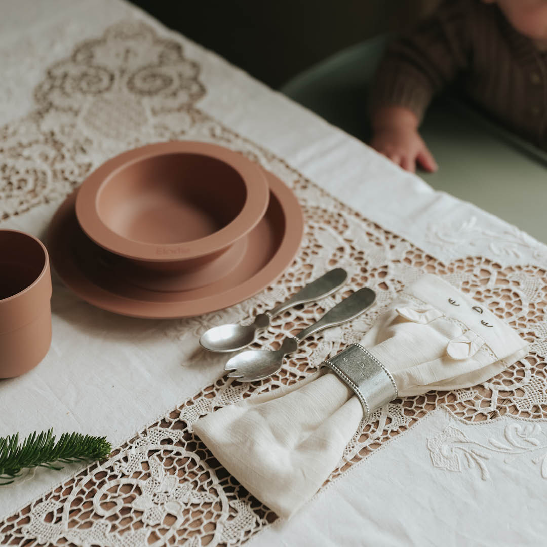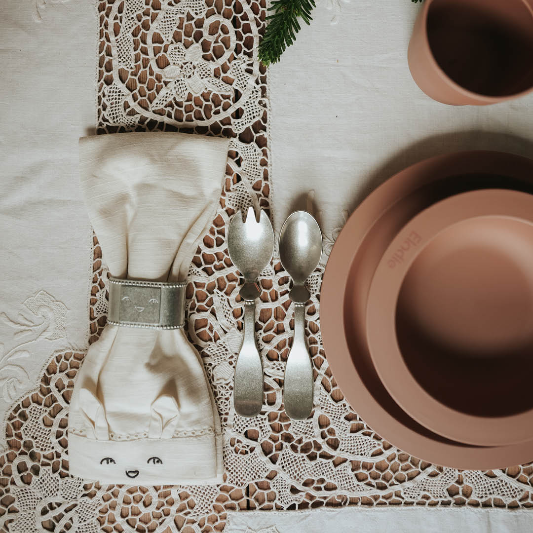 This three-piece children’s cutlery set is designed for tiny hands and decorative table settings. Large and well-rounded handles help first-time eaters get a good grip, and oversized scoops makes your child’s meals more enjoyable.