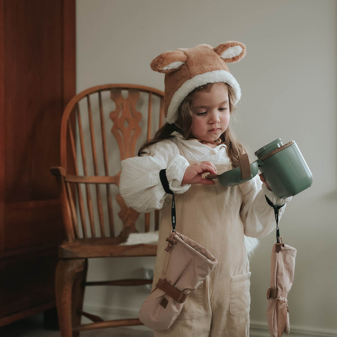 These mittens are available in two sizes. The larger size features an extra wide wrist opening for fast and easy use, and a Velcro flap that gives adjustable width. We’ve added a smart little zip between the thumb and palm that lets you guide your child’s thumb in to place in no-time.