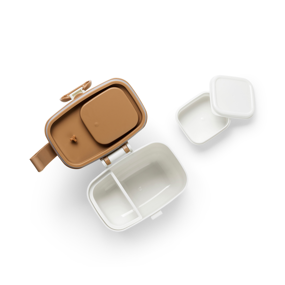 This adorable container has several compartments to keep different food items separate and fresh for a long time. The lid is lined with a food-grade silicone ring that makes it completely air-tight and helps preserve the freshness of food or snacks longer. For ease-of-use it can be both machine-washed and stored in the freezer. Sized to fit perfectly in an Elodie BackPack MINI alongside our Stainless-Steel Water bottle. The materials used in this product are 100% free harmful substances such as BPA or Phtalates. Suitable for use by children 3 years and older.