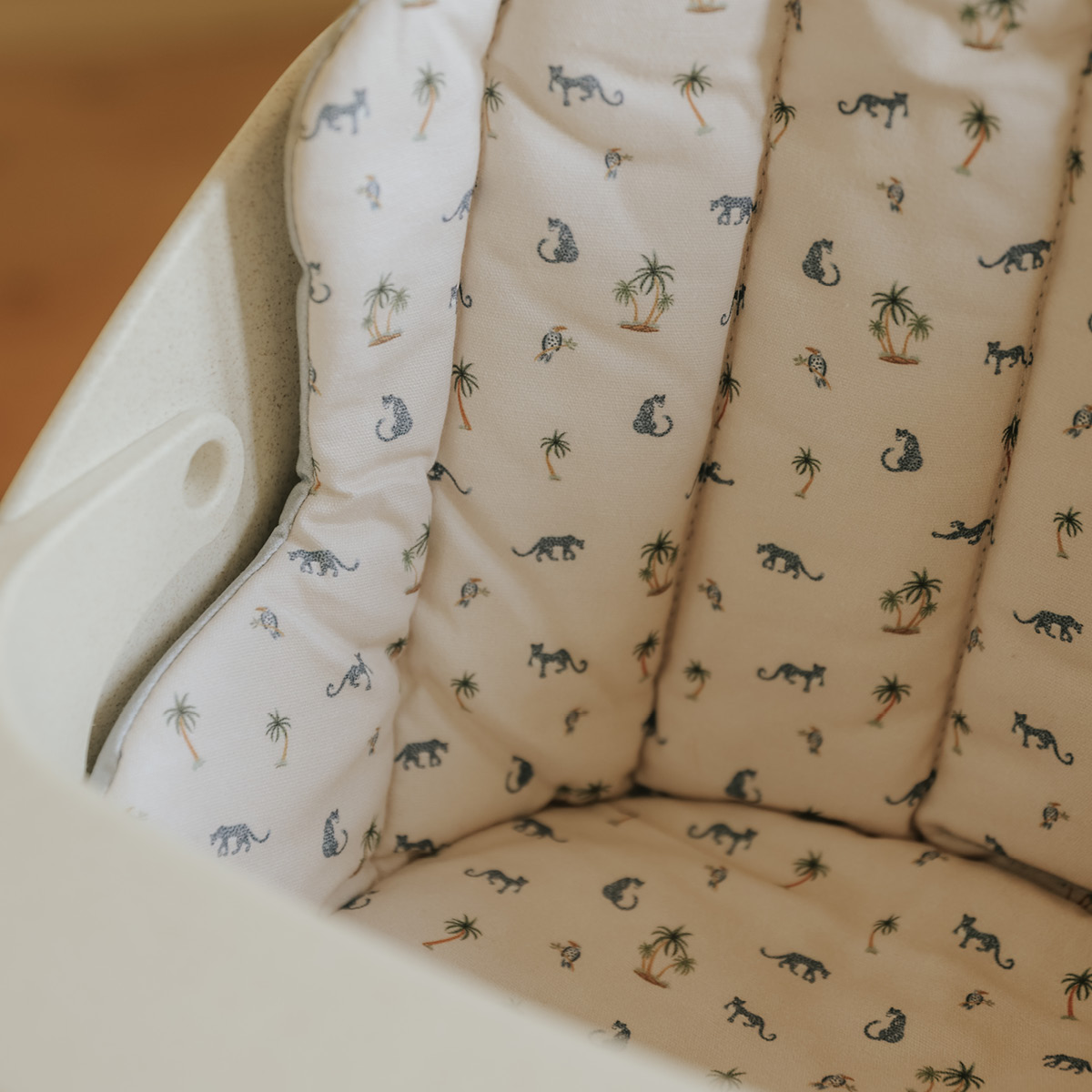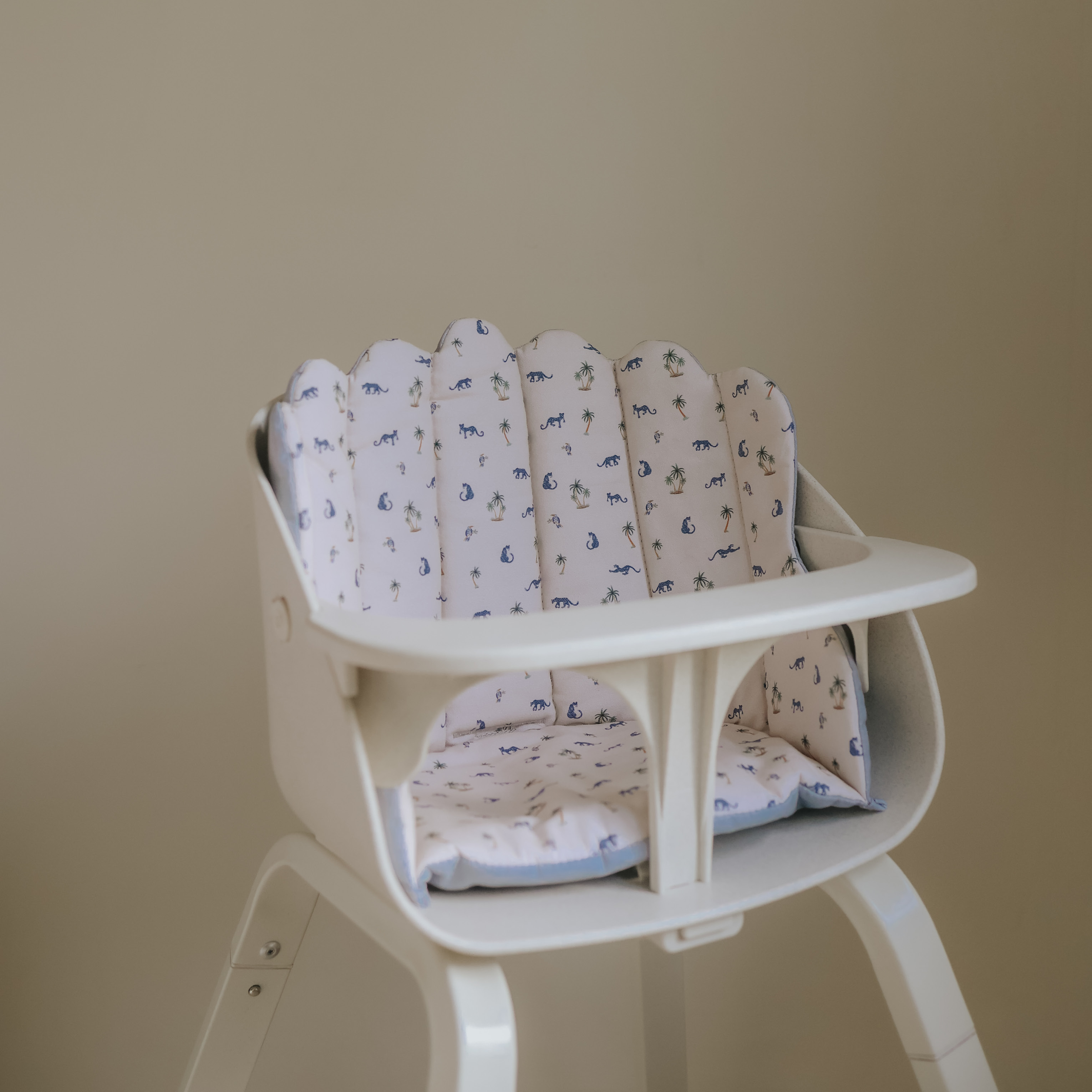 These beautifully designed cushions for Elodie's GRACE High Chair come in a variety of styles, always with an emphasis on trends. They are made from 100% soft cotton with a dirt-repellent surface. Each cushion features two different sides, allowing you to alternate designs. The cushion has openings for the three-point harness, ensuring a perfect fit in the chair. With these cushions, you can create your own personal style while keeping your child comfortably seated during mealtime.