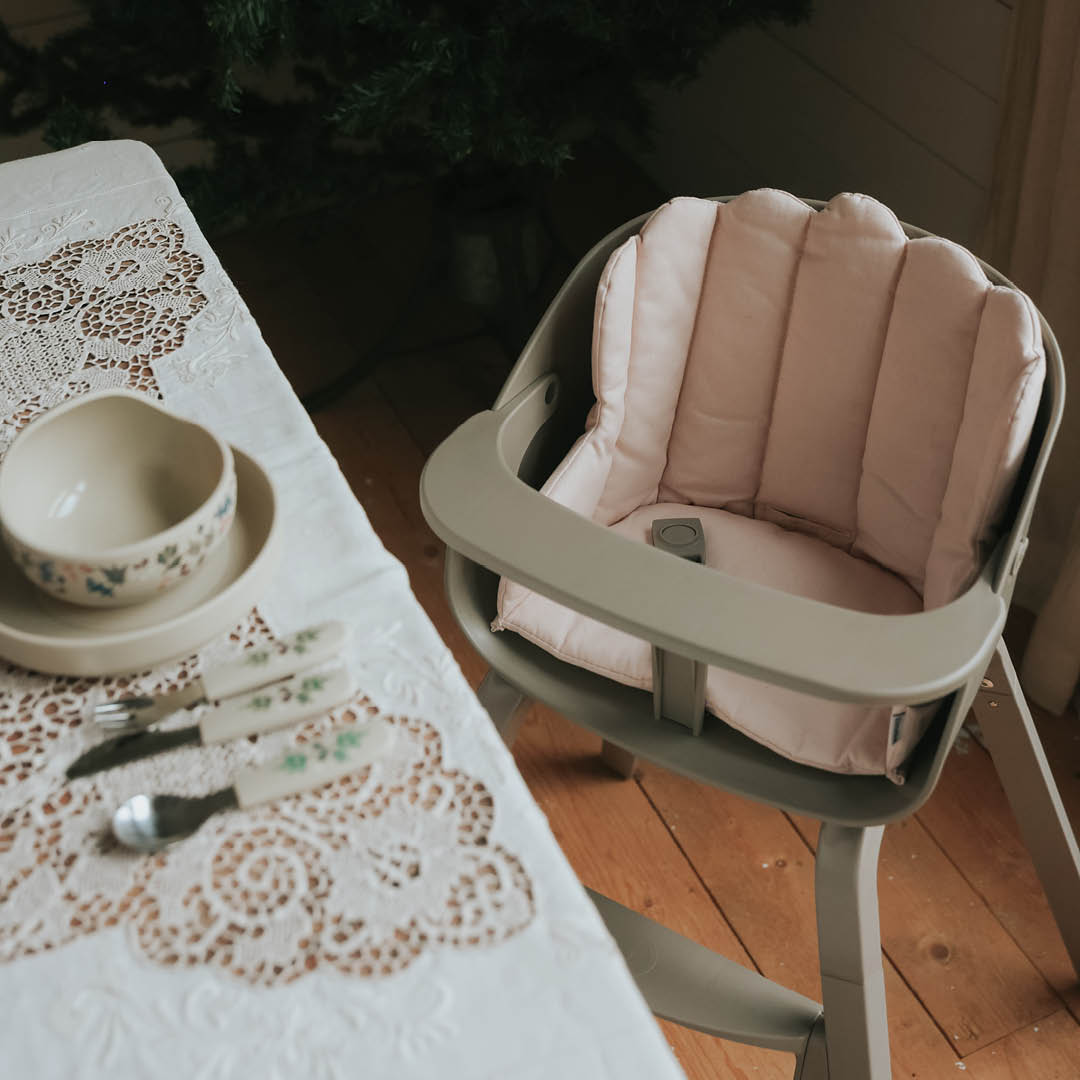These beautifully designed cushions for Elodie's GRACE High Chair come in a variety of styles, always with an emphasis on trends. They are made from 100% soft cotton with a dirt-repellent surface. Each cushion features two different sides, allowing you to alternate designs. The cushion has openings for the three-point harness, ensuring a perfect fit in the chair. With these cushions, you can create your own personal style while keeping your child comfortably seated during mealtime.