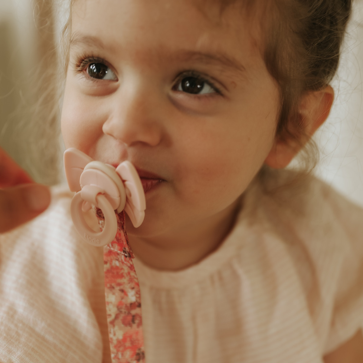 The Binky Bow pacifier has a bow shape that is unique for Elodie and comes in shades that are easy to match with other accessories from our range. It features an orthodontic silicone teat and is suitable for babies aged 0–6 months. The shield is equipped with three ventilation holes to allow air circulation and protect the sensitive skin around your baby’s mouth from irritation.