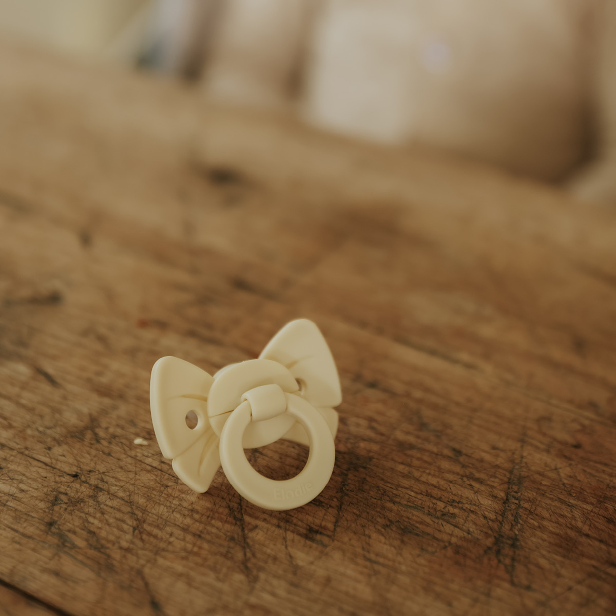 The Binky Bow pacifier has a bow shape that is unique for Elodie and comes in shades that are easy to match with other accessories from our range. It features an orthodontic silicone teat and is suitable for babies aged 0–6 months. The shield is equipped with three ventilation holes to allow air circulation and protect the sensitive skin around your baby’s mouth from irritation.