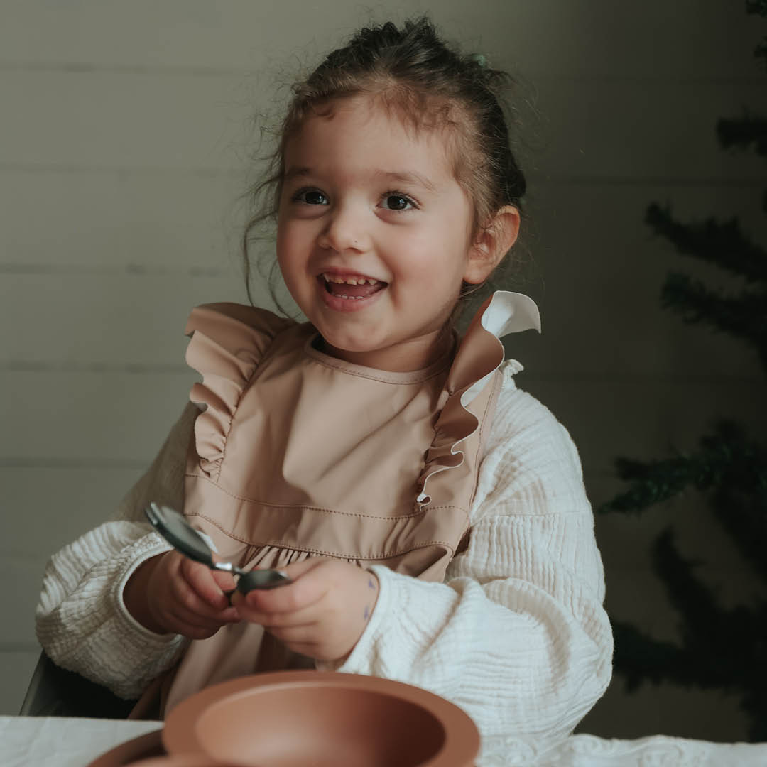 Elodies vackra haklappar är en uppskattad vardagsfavorit hos många småbarnsfamiljer. Med sitt OEKO-TEX® certifierade och snabbtorkande material, perfekta passform och höga funktionalitet är det lätt att förstå varför. Torka eller skölj bara av den efter varje användning så är den redo att användas på nytt efter en kort stund. Den breda formen täcker både axlar och bröst. Den eleganta, förklädesinspirerade modellen ger ett generöst skydd under de mest kladdiga – och festliga – stunderna. Idealisk vid bakning, när tårtan ska dekoreras eller som stilfullt skydd vid alla kreativa pysselstunder. Haklappen fästs i nacken med ett stort, mjukt kardborrefäste som ger ställbar storlek och gör att den passar även för äldre barn. En fantastisk haklapp full av smarta funktioner som gör livet med små barn ännu vackrare.